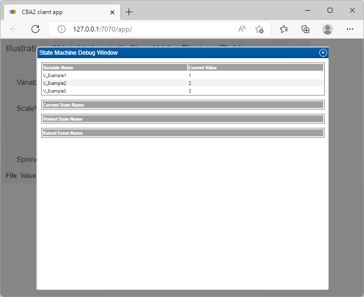 VariableValueDisplays are linked to a variable using Context MenuX/Y) and size (Width/Height)For item development, the Preview provides the State Machine Debug Window that lists (beyond other things) the current value of variables.