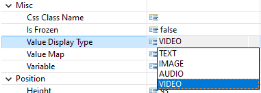 *) and can use Texts or refer to resources (Images, Audio, Video from the Resource Browser).Layout Options for Value Display Type TEXT