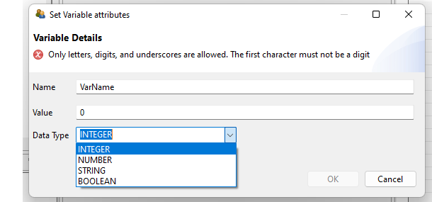 INTEGER, NUMBER, STRING or BOOLEAN) and a default Value.INTEGER variables (i.e., numbers without decimal places) are typically used.Variables and (Map-Based) Variable Displays are used for many purposes, for instance, to implement Drag-and-Drop response formats.