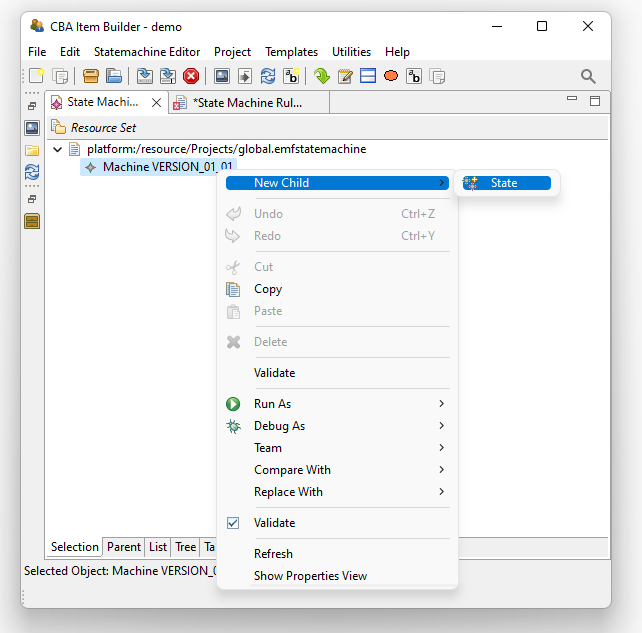 Machine VERSION_01_01.New Child > State. <not set>. State Type