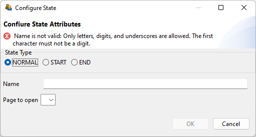 Configuration of states is also possible in the Properties-view, but avoid typos in Page-names!