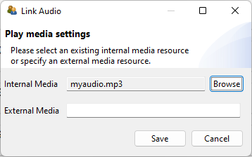 Audio1X: 40, Y: 225, Height: 30, Width: 940Audio component to the Internal Media (i.e., file myaudio.mp3)