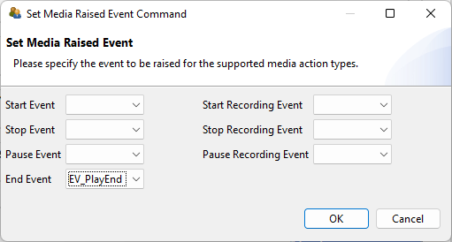 EV_PlayEnd:page1 in the Page Editor and right-click the Audio-component. Select Link Media Events and assign the event EV_PlayEnd to the slot End Event.