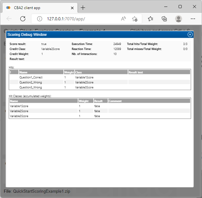 With the Scoring Debug Window item authors can define and test the scoring for all possible ways to interact with the Task.